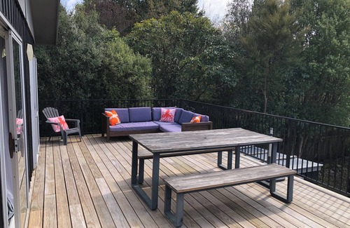 Este bach de Kuratau incluye un estilo de vida simple y abierto que fluye hacia la espaciosa cubierta; hay un amplio espacio para relajarse bajo el sol o encender la barbacoa en un verdadero estilo kiwi. La generosa sección plana es ideal para juegos familiares bajo el sol.