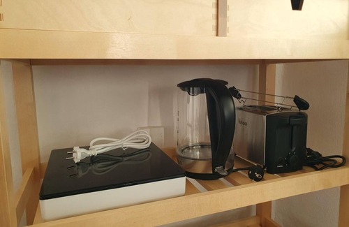 La cocina básica está equipada con cafetera y tetera, hervidor eléctrico y tostadora.