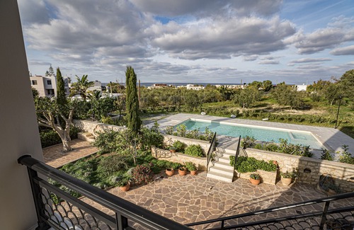 Krissa Villa está decorada en un estilo minimalista contemporáneo con elementos tradicionales de Creta. La casa de dos pisos de 186 m² recientemente renovada puede acomodar perfectamente hasta ocho personas. Al entrar hay una gran área de espacio abierto que incluye la cocina, el comedor y la sala de estar. La cocina está totalmente equipada con todos los electrodomésticos y utensilios necesarios para preparar deliciosas comidas que luego puede disfrutar en una de las terrazas sombreadas con vista a la piscina. Ofrecemos a nuestros huéspedes nuestro propio aceite virgen extra, mermelada casera y miel, así como vino cretense y raki. También hay frutas y verduras frescas del jardín. En la cómoda sala de estar con dos sofás podrá relajarse y disfrutar de sus películas favoritas, jugar o incluso encender la acogedora chimenea. En la planta baja también hay un baño, así como un dormitorio de matrimonio con acceso a un balcón sobre la zona de barbacoa.
