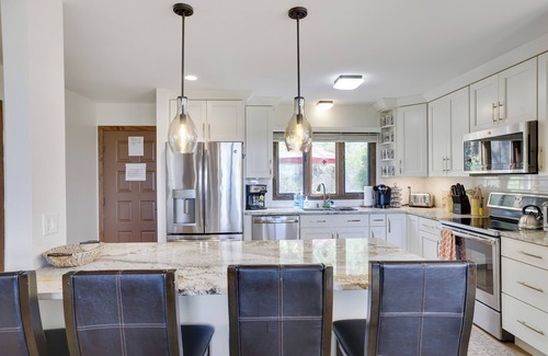 La casa fue recientemente remodelada por completo, y todo es nuevo. Viene completamente amueblado con mejoras que incluyen: televisores inteligentes, colchones viscoelásticos, acceso a Internet, wifi, chimenea, calefactor / aire acondicionado, parrilla al aire libre, lavadora / secadora y una cocina totalmente equipada con refrigerador, estufa, horno, lavaplatos, cafetera Keurig y café. Olla, horno tostador, licuadora y microondas. La casa incluye ropa de cama, sábanas y toallas, así como platos, ollas y sartenes y cubiertos.