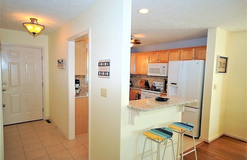 La cocina del nivel principal se abre al comedor y sala de estar, cocina bien equipada con paquete completo de electrodomésticos, cafetera Keurig, licuadora, tostadora y todos los utensilios de cocina, platos, ollas y sartenes, cubiertos, platos, tazas, etc. Casa y cocinar sus comidas favoritas. Un montón de espacio en el gabinete para almacenar comestibles. Medio baño en el nivel principal