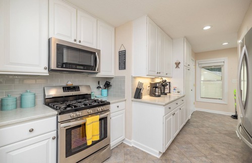 Al instalarte en este alojamiento de 5 dormitorios y 3 baños, encontrarás una sala de estar, una zona para barbacoas, aire acondicionado y escritorio. El cuarto de baño incluye un secador de pelo, toallas y papel higiénico. La cocina está equipada con horno, placa de cocina y frigorífico, además de cafetera y tetera, máquina de hielo y microondas. Y no tendrás que llevarte ropa de más, porque podrás aprovechar la lavadora y la secadora.
