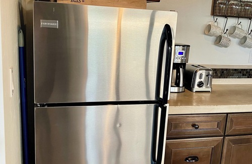 Nuestra sala común cuenta con un amplio sofá seccional, mesa de comedor para 8 personas, refrigerador de tamaño completo y cocina espaciosa y bien equipada. Aunque no hay estufa (lo mantenemos legal), la cocina es un área de preparación y servicio de alimentos completamente funcional. Tiene un fregadero con agua RO, estación de café y té, gran plancha / parrilla eléctrica (para tocino, huevos, panqueques, verduras, etc.), olla arrocera, horno / tostador de convección en la encimera, microondas, platos y utensilios. También se ofrece café y té orgánicos localmente tostados.