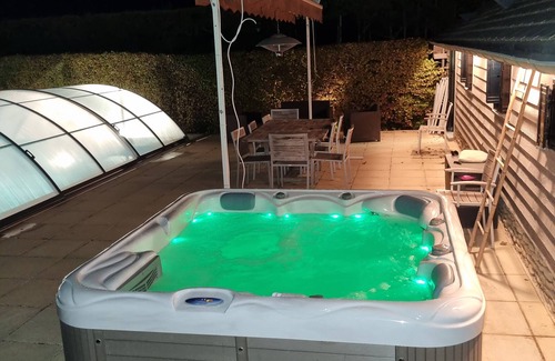 Relájate en la piscina climatizada de esta casa de vacaciones, que cuenta con un jardín y muebles de exterior, o tómate algo en la bañera de hidromasaje. Para cambiar un poco, entra dentro y ponte a prueba jugando al futbolín, o disfruta del wifi gratis y de la televisión por satélite o cable.