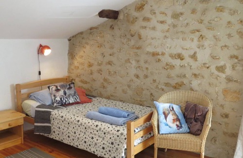 La granja restaurada con cariño ofrece un excelente alojamiento familiar. Martrieux tiene 4 dormitorios, 3 baños y un hermoso jardín secreto con parrilla. 10 acres de jardines, bosques, prados para explorar en el Parque Nacional Perigord Vert. La tranquila aldea de Nadaillac se encuentra en un valle fluvial entre La Rochebeaucourt (5 km) y Villebois (8 km) cerca de Angouleme y Perigueux. Una impresionante posición rural con paseos directamente desde la puerta pero todas las comodidades cerca.