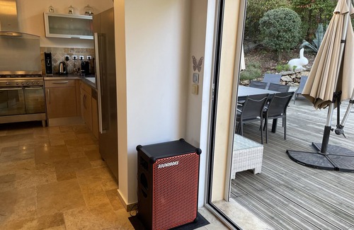 En 1500 m2 de jardín, piscina climatizada, orientada al sur, la casa es muy clara, disfruta de un vistazo al mar. Estacionamiento para 3 autos, bolera, amplias terrazas con plancha cerca de la piscina. Las playas están a 10 minutos a pie, y algunas tiendas a 5 minutos. Las casas fueron completamente restauradas en 2014, todos los baños, sanitarios y ropa de cama tienen como máximo 4 años. El área es muy tranquila, el interior de Cap d'Antibes es frecuentado solo por residentes.