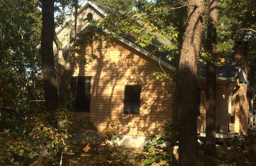 Cape Contemporary, rodeado de bosques, recientemente remodelado con muchas ventanas agregadas y 3 puertas correderas que salen a una nueva cubierta grande. La casa está en una zona boscosa tranquila de Cahoon Hollow Road, a minutos Bien Center y los restaurantes de la flota, a pie de largo Dyer y estanques a través de camino boscoso en la costa del nacional. La casa está convenientemente configurada para 8 personas con 4 dormitorios. Hay un dormitorio en el primer piso con una reina, un gran comedor y una nueva sala de estar / familia. El segundo piso tiene 2 dormitorios, una zona de loft y baño completo. La primera habitación es muy grande y tiene 1 cama king size, 2 º dormitorio es más pequeño y tiene una mesa y 2 individuales extralargas (hojas están disponibles para su uso). Hay un nuevo dormitorio completamente terminado en la zona del sótano a pie, con un cuarto de baño. Hay televisión por cable e Internet de alta velocidad, ducha al aire libre, electrodomésticos nuevos, cocina completa con muchas herramientas de cocina, ventilador de techo grande en la sala de estar, ventiladores para todas las habitaciones, lavadora / secadora, parrilla de gas Weber, sillones, mesas y sillas al aire libre / sombrilla, 8 sillas de playa, juguetes para niños, flores alrededor de la casa y en la cubierta.