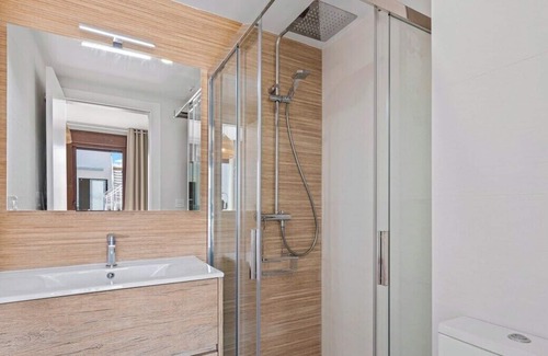 This modern apartment has two bedrooms and two bathrooms. The first bedroom has a double bed with direct access to the wonderfull terrace and ensuite bathroom. The second bedroom has two single beds with a separate bathroom.