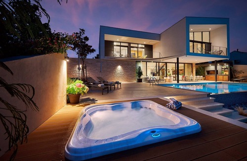 Perched directly on the beachfront, Villa Blue Oasis affords breathtaking vistas of the Adriatic Sea and immediate access to its crystalline waters. Whether lounging in the warmth of the heated pool, unwinding in the Jacuzzi, or simply admiring the panoramic views from your private terrace, each moment is an indulgence in serenity and luxury.