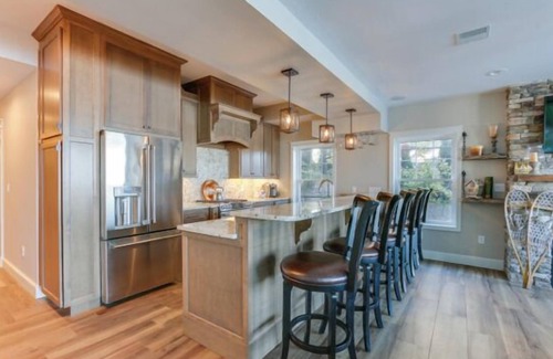 Al instalarte en este alojamiento de 5 dormitorios y 5.5 baños, encontrarás una zona para barbacoas, chimenea y aire acondicionado. Disfruta del wifi y de la televisión. El cuarto de baño incluye un secador de pelo, toallas y papel higiénico. La cocina está equipada con horno, placa de cocina y frigorífico, además de cafetera y tetera, hervidor eléctrico y máquina de hielo. Y gracias a la lavadora y la secadora, podrás viajar con poco equipaje. Otras comodidades incluyen ropa de cama, una tabla de planchar y calefacción.