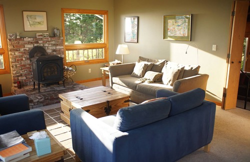 Una casa grande, privada, de tres dormitorios, dos baños, con magníficas vistas del Océano Pacífico. Cada habitación está lujosamente decorada. La sala de estar y el comedor tienen una vista increíble de seis ventanas del Pacífico con olas de agua blanca que se estrellan sobre rocas expuestas. La casa tiene una chimenea y dos estufas de leña, una cocina bien equipada y una gran terraza para disfrutar del atardecer. Además de las tres habitaciones hay un acogedor loft y zonas tranquilas para leer y relajarse.