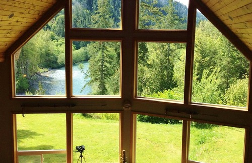 River House, una casa de 2672 pies cuadrados en un banco alto sobre el río Elwha, ofrece vistas del río y las montañas nevadas que son una delicia para los fotógrafos, una vista siempre cambiante de luces y sombras.