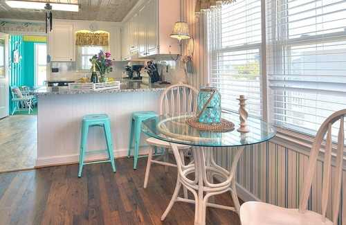 La relajación lo espera en Wind Beneath My Wings, una encantadora y original casa de campo frente al mar en Holden Beach. Aquí, en el nivel superior, encontrará 3 habitaciones, dos baños completos, 4 televisores de pantalla plana con cable expandido, reproductor de DVD, ventiladores de techo en cada habitación y pisos de madera noble. Todo esto se complementa con paredes encaladas de ranura y lengüeta frotado a mano. La cocina cuenta con un bar para comer, y se abre a una gran sala luminosa y alegre, perfecta para reunir a la familia en una velada de juegos o para ver una película favorita.
