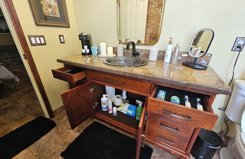 This Santa Clara studio boasts 1 inviting bedroom with a queen bed and a futon. The cozy space includes a bathroom with a shower and essential amenities like a hairdryer. Guests can relax in the peaceful atmosphere and unwind after a day of exploring. Fall in love with Santa Clara and enjoy the magic it has to offer. Enjoy the spacious backyard with putting green, pool, playground for the kids, BBQ and plenty of room for your pets. Fully stocked with towels, plenty of bedding, toiletries and mini kitchenette with a small fridge, microwave, air fryer, Keurig and dishes. After a day enjoying the many recreation opportunities of Santa Clara and the surrounding area relax by the pool or enjoy binging your favorite show on Netflix. Take a day trip to Zion or Lake Powell or just stay in and practice your putting, swim or just plain veg!
