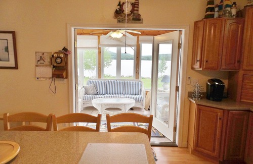 Esta casa frente al lago tiene todas las comodidades. En el exterior, además de hermosas vistas, tiene una playa de arena, muelles, cancha de herradura y brasero; así como un área enorme para lanzar la pelota. Hay mucho espacio de aparcamiento.