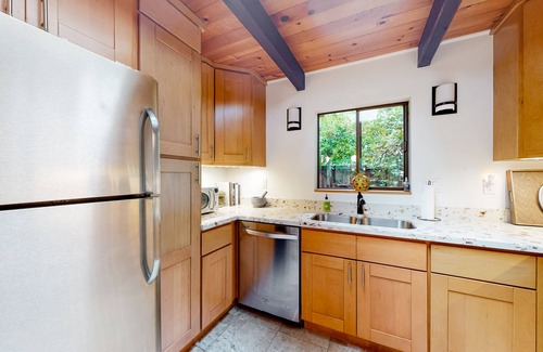 Mid-century home in the redwoods with expansive deck, garden & woodstove | Casa en Gualala