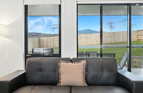 Set on a single level and built with maximum accessibility in mind, the home features three beautifully furnished bedrooms with queen beds and three generous bathrooms—each private and well-appointed. Two of the bathrooms are designed for full accessibility with step-free showers, grab rails, and open space for easy movement. The kitchen is fully equipped with quality appliances, stone benchtops, a full-size fridge, dishwasher, and everything you need to cook at home. The open-plan living and dining area connects seamlessly to a private outdoor patio with alfresco dining and an electric BBQ. The home also includes a separate laundry and internal access to a secure garage for off-street parking.