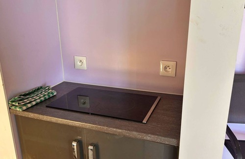 La cocina incluye 1 placa eléctrica con todo lo necesario para preparar sus comidas durante su estancia. También hay un frigorífico disponible, así como los siguientes electrodomésticos: hervidor, microondas