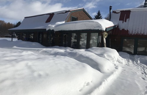El salón tiene una estufa de leña para relajarse después de un gran día en las puertas. Tiene un televisor inteligente para mirar en el cómodo sofá. Hay una mesa para sentarse y jugar o simplemente mirar la vista. La cocina cuenta con electrodomésticos de acero inoxidable. La estufa cocina con gas. Hay un medio baño fuera de la cocina. La habitación familiar tiene un sofá desplegable en una cama queen. Hay una chimenea de gas y fantásticas vistas a su alrededor.