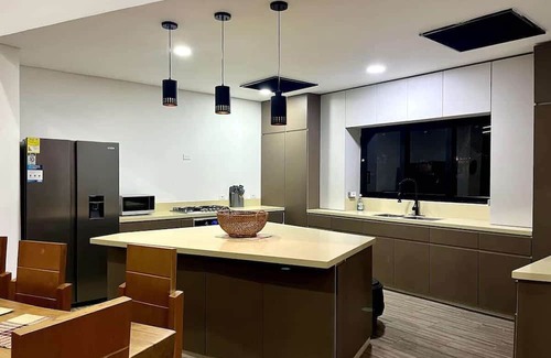 Descubre este espectacular chalet moderno en una tranquila vereda de Filandia con vistas únicas al Eje Cafetero, desde Armenia hasta Pereira. Su diseño contemporáneo y su piscina infinity te ofrecen el escenario perfecto para relajarte mientras contemplas la naturaleza. Equipado con cocina completa, parrilla, WiFi Starlink, 5 baños y 4 walking closets, tiene capacidad para 12 personas. Ubicado a 8 minutos de Filandia, cerca de Panaca, el Parque del Café y las principales atracciones de la región