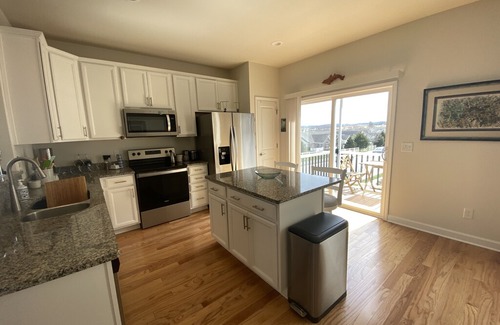 Relax in a newly built townhome with all the modern comforts. Home includes new appliances with luxury furnishings. Two beautiful balconies provide amazing views of the mountains and city skyline. Exercise room, vaulted ceilings, and more with two large bedrooms each w/en suite bathrooms. Two smart TVs, high-speed wireless, NetFlix, and office workspace, additional sleeping options on request for up to 7 people. Near the famous Huckleberry Trail, I-81/460, minutes to VT, near Radford.