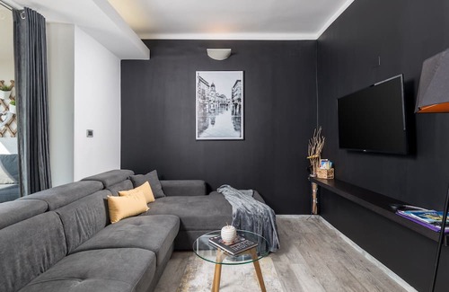 The luxury apartment SKY VIEW successfully combines minimalism and simplicity with modern design and quality materials. It consists of an entrance hall, a kitchen with a dining room dominated by a bar with four bar stools, from this place there is a view of Rijeka and the entire Kvarner Bay. In the living room, there is a TV on one side, and on the other side there is a glass wall that reveals a beautiful view. Two bedrooms and a bathroom are on the north side. From the living room you go out to a covered terrace with an electric awning and barbecue.