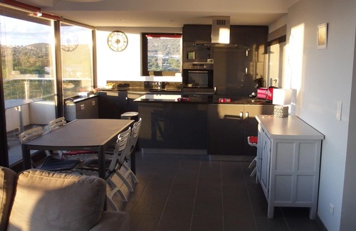 Amplio apartamento, con una impresionante zona acristalada y dos terrazas cubiertas con impresionantes vistas de la bahía de Algajola y las montañas circundantes.