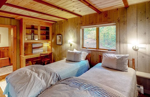 Open & spacious mountain home with hot tub, large deck, fireplace, & ski view | Casa en Winhall