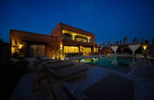 Este 7 Dormitorios Villa proporciona alojamiento con Estacionamiento, Piscina, Seguridad, por su conveniencia. Este Villa cuenta con muchas comodidades para los huéspedes que desean quedarse durante unos días, un fin de semana o probablemente unas vacaciones más largas con la familia, amigos o grupo. Este Villa es menos que 2 KM de Oulad Hassoune, y ofrece a los visitantes la oportunidad de explorarlo. La renta Villa posee 7 Dormitorios y 8 Baños para hacerte sentir como en casa.