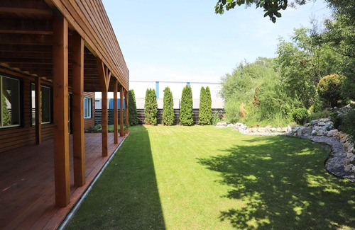 Después de un día de senderismo, esquí o ciclismo, relájese en el jardín o en el salón compartido.