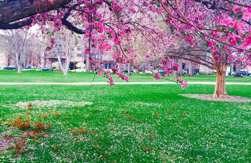 El verde, patio delantero con toldo proporciona un espacio chill-out agradable para disfrutar de un cielo azul de Denver. En verano, invitamos a los huéspedes a visitar el patio trasero para recoger manzanas agrias de uno de nuestros manzanos.