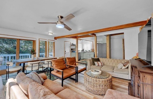 En esta casa de vacaciones para familias podrás disfrutar del esquí de fondo, del kayak y de mucho más a muy poca distancia. El alojamiento dispone de aparcamiento en las instalaciones. Además, estarás a 6min en coche de Kalahari y a 4min en coche de Summit Lanes.