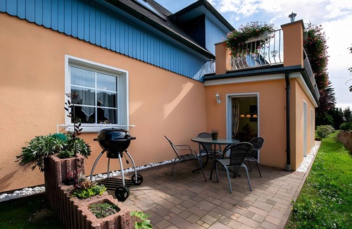 Your private, uncovered terrace invites you to relax and dine outdoors with your own barbecue while enjoying the picturesque surroundings. For active exploration, 5 e-bikes are available for you to discover the beautiful area of Bad Brambach at your own pace.