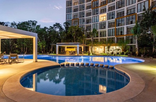 Relájate con tu pareja y/o familia en este Penthouse con capacidad hasta para 10 personas, Roof privado con jacuzzi y asador e increíbles vistas a la Selva Maya en uno de los más exclusivos desarrollos de Playa del Carmen.