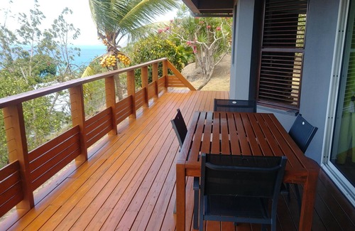 Ubicada a 3 minutos en coche de la playa de Diamant, la villa está rodeada de vegetación tropical y cuenta con ventilación natural y vistas panorámicas al mar.