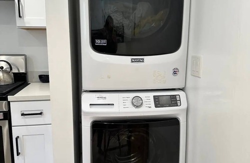 La cocina está equipada con horno, placa de cocina y frigorífico, además de cafetera y tetera, hervidor eléctrico y microondas. El cuarto de baño incluye un secador de pelo, toallas y papel higiénico. Y gracias a la lavadora y la secadora, podrás viajar con poco equipaje. Otras comodidades incluyen ropa de cama, aire acondicionado, calefacción y cambio de toallas a petición.