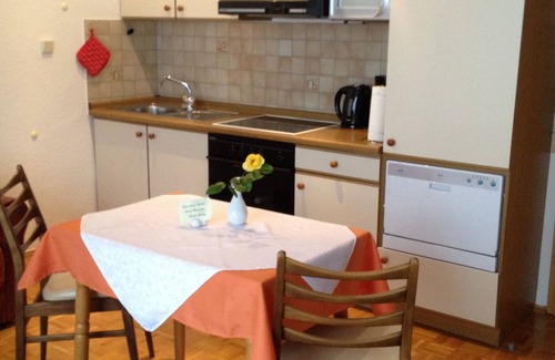 Bienvenido a nuestro apartamento de 4 estrellas comodidad en un lugar céntrico y con zonas de estar y dormitorio independientes. El apartamento moderno y hermoso en la 1ª planta tiene capacidad para 1-3 personas. Sala de estar con TV de pantalla plana, equipo de música, caja fuerte y teléfono directo. Cocina con lavavajillas, microondas, cafetera y tostadora. Dormitorio con radios de disco colchones y despertador. Baño con ventana, ducha y secador de pelo. Alergia amigable parquet.