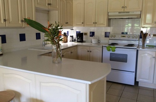 Cocina familiar bien equipada con cafetera, licuadora, exprimidor de frutas, tostadora grande, horno grande, microondas, nevera / congelador grande con máquina de hielo. Cuarto de lavado con lavadora grande y secadora por separado disponibles.