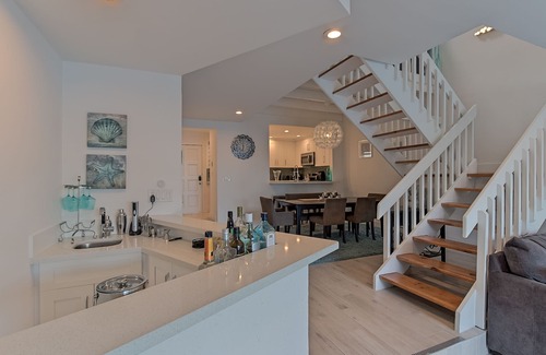 Hasta 6 huéspedes pueden disfrutar del interior luminoso y moderno con 2 dormitorios, loft con cama Queen, 2 ½ baños, bar con fregadero y todas las comodidades del hogar. Cuando no se relaje en la playa o se relaje en esta acogedora casa urbana, tome el taxi acuático local y recorra los sitios locales a lo largo de las vías fluviales intercosteras.