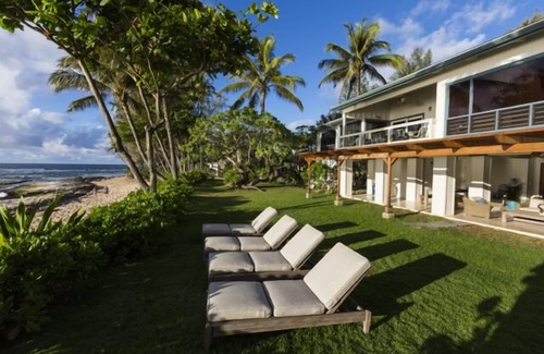 Esta hermosa casa está ubicada en una de las playas más espectaculares y tranquilas de la costa norte. Las tortugas se ven con frecuencia en esta playa de arena. La famosa Laniakea y otros lugares de surf se encuentran a poca distancia. Esta cómoda casa de campo tiene un gran patio cerrado, acceso a una playa de arena blanca, vistas espectaculares desde casi todas las habitaciones, aire acondicionado en las habitaciones y la sala de estar, sistema de sonido Sonos en todo el hotel, The Egg para asar a la parrilla, amplio estacionamiento, un acogedor y cubierto bajo lanai, y un maravilloso lanai superior para cenar e impresionantes vistas al mar.