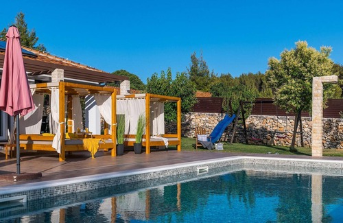 Preciosa casa en Dubrava, cerca de. Se encuentra en Sibenik. Preciosa casa en Dubrava, cerca de. ofrece alojamiento, con Niño amigable, Internet, Lavandería, Entre otras comodidades. Estas características Casa Niño amigable, Internet, Lavandería, Para que su estadía sea cómoda.