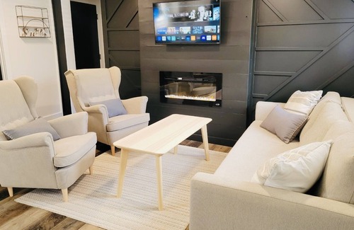 Este alojamiento de 2 dormitorios y 1 baño cuenta con una sala de estar, un sofá cama, chimenea y aire acondicionado. Prepara una comida casera en la cocina, equipada con horno y placa de cocina, además de cafetera y tetera, microondas y tostadora.