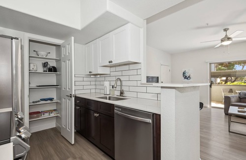 Este alojamiento de 2 dormitorios y 2 baños cuenta con una sala de estar y aire acondicionado. El cuarto de baño incluye un secador de pelo y toallas. La cocina está equipada con horno, placa de cocina y frigorífico, además de cafetera y tetera, hervidor eléctrico y máquina de hielo. Y gracias a la lavadora y la secadora, podrás viajar con poco equipaje.