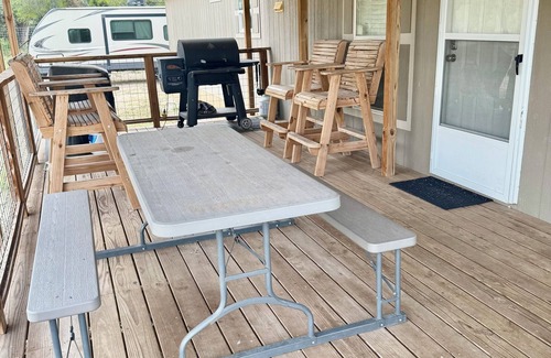 Make yourself at home in this delightful 2-bedroom Junction retreat. This mobile home features 1 king bed and 2 bunk beds, perfect for a cozy getaway. With heating and AC, two bathrooms including a bathtub, this spot has everything you need for a comfortable stay. Experience what Junction has to offer while still feeling remote. Enjoy the access to the pristine North Llano River.