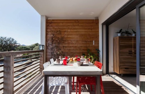 Residencia "Résidence Cita di Sali", moderna. En el barrio de Vignola, en la periferia, lugar céntrico, a 500 m del mar, a 8 km de la playa. Comunitario: piscina (16 x 5 m, 140 cm de profundidad, Disponible por temporada: 15.May. - 30.Sep.). Mantenimiento de la piscina a través del propietario/jardinero. Acceso hasta 20 m de la casa. Aparcamiento (número limitado) junto a la casa. Tienda, tienda de comestibles 100 m, supermercado 2 km, restaurante 100 m, parada autobús 80 m, playa de arena "Santa Giulia" 8 km. Puerto deportivo 200 m, campo de golf (18 hoyos) 6 km, centro ecuestre 3 km. Atracciones en los alrededores: Figari 22 km, Bonifacio 25 km, Solenzara 40 km, Iles Lavezzi. A tener en cuenta: coche recomendable. Residencia con puertas de cierre eléctrico.