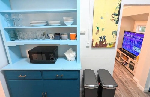 La cocina está equipada con horno, placa de cocina y frigorífico, además de cafetera y tetera, microondas y utensilios de cocina. Conéctate al wifi gratis, o relájate frente a un Smart TV. El cuarto de baño incluye un secador de pelo, toallas y papel higiénico. Y gracias a la lavadora y la secadora, podrás viajar con poco equipaje. Otras comodidades de este alojamiento de 1 dormitorio y 1.5 baños incluyen ropa de cama, un escritorio, calefacción y una pantalla de ordenador.
