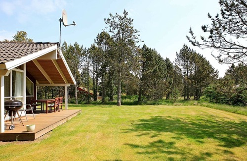 Casa de vacaciones con bañera de hidromasaje y sauna situada justo al lado del popular campo de golf Hvide Klit. La casa está bien amueblada con una gran cocina / comedor, donde toda la familia puede disfrutar y desde el comedor se puede seguir la rica vida salvaje que se encuentra en la zona. Desde el salón se accede a la terraza, que está parcialmente cubierta, para poder disfrutar de las cálidas tardes de verano. Hay un juego de columpios y un trampolín (se usa bajo su propio riesgo / seguro). Hay buenos dormitorios y un gran baño con jacuzzi y sauna.