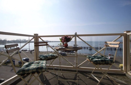 Cómodo apartamento dúplex de vacaciones de 4 habitaciones distribuido en 2 plantas con balcón y fantásticas vistas al puerto y al lago en la isla de Poel, en el mar Báltico.