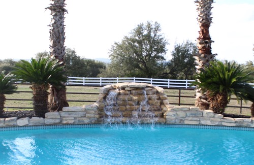 A medida que atraviesa la puerta y comienza a subir la colina, comienza el viaje de diversión y relajación. El camino sinuoso se abre a una hermosa casa en la colina con una piscina relajante en la parte trasera con vistas al campo de Texas Hill. Los cuernos largos estarán pastando en el heno o la hierba en el pasto. Aquí es donde comienza la relajación.