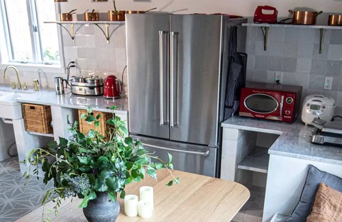 La cocina está equipada con horno, placa de cocina y frigorífico, además de cafetera y tetera, hervidor eléctrico y máquina de hielo. Y como podrás aprovechar la lavadora y la secadora, no te hará falta llevar mucho equipaje.